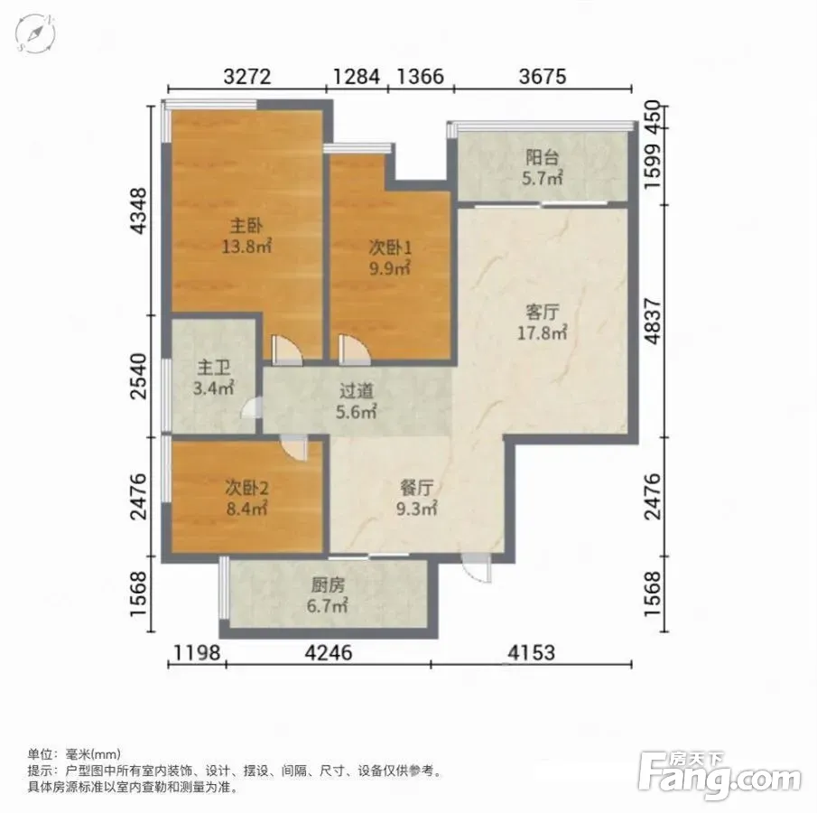 户型齐全,主打主卧带卫,干湿分离三居