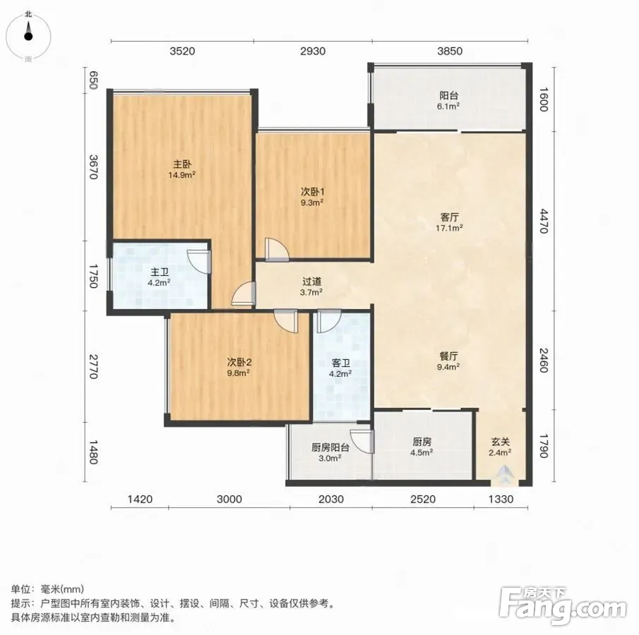 户型齐全,主打主卧带卫,双阳台四居