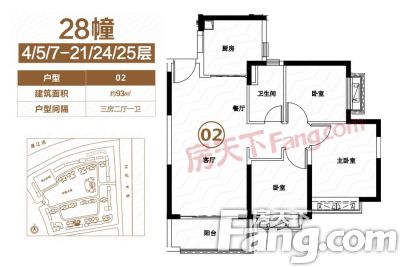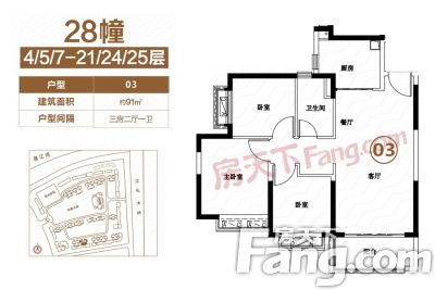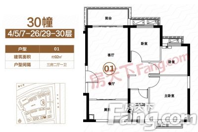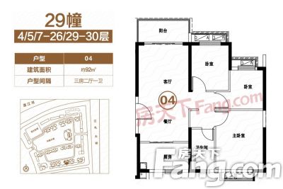 户型齐全,主打全明格局,户型方正三居