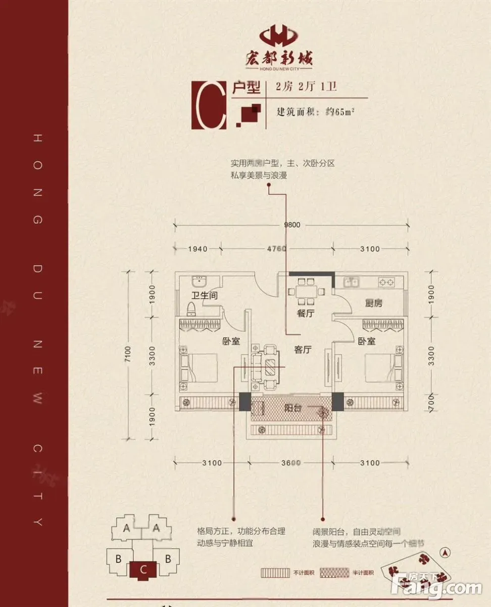 宏都新城65方2房出售!业主急售去外地工作!随时看房!诚心卖
