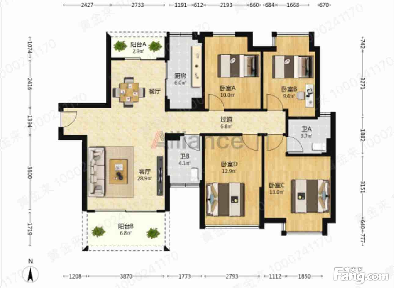 莱茵华庭南向4房2厅2阳台拎包入住