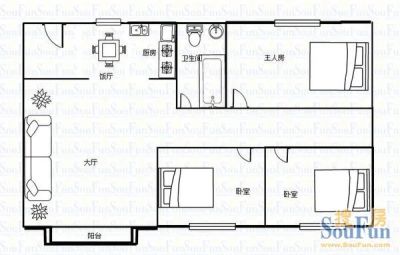 户型齐全,主打明卫,客厅朝南,主卧朝南三居