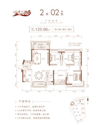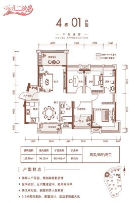 江门二沙岛户型主要有94平-108平的三开间朝南,双阳台的三居 、119平-125平的全明格局,双阳台的四居 。