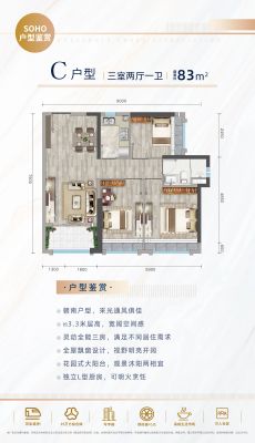 越秀 滨江·盛悦户型主要有83平-92平的南北通透,双阳台的三居 、64平-80平的南北通透,动静分离的二居 、35平-37平的全明格局,采光充足的一居 。