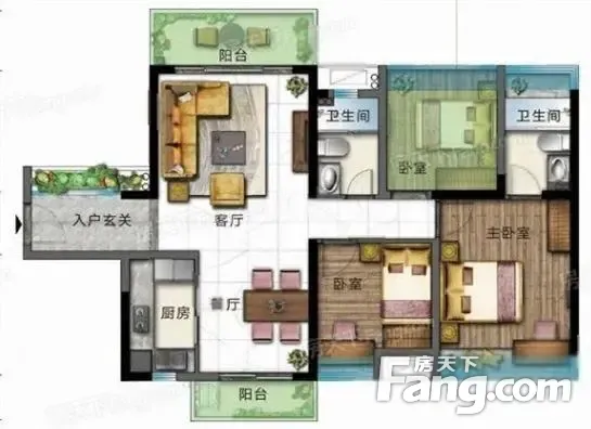 户型齐全,主打主卧带卫,主卧套间三居