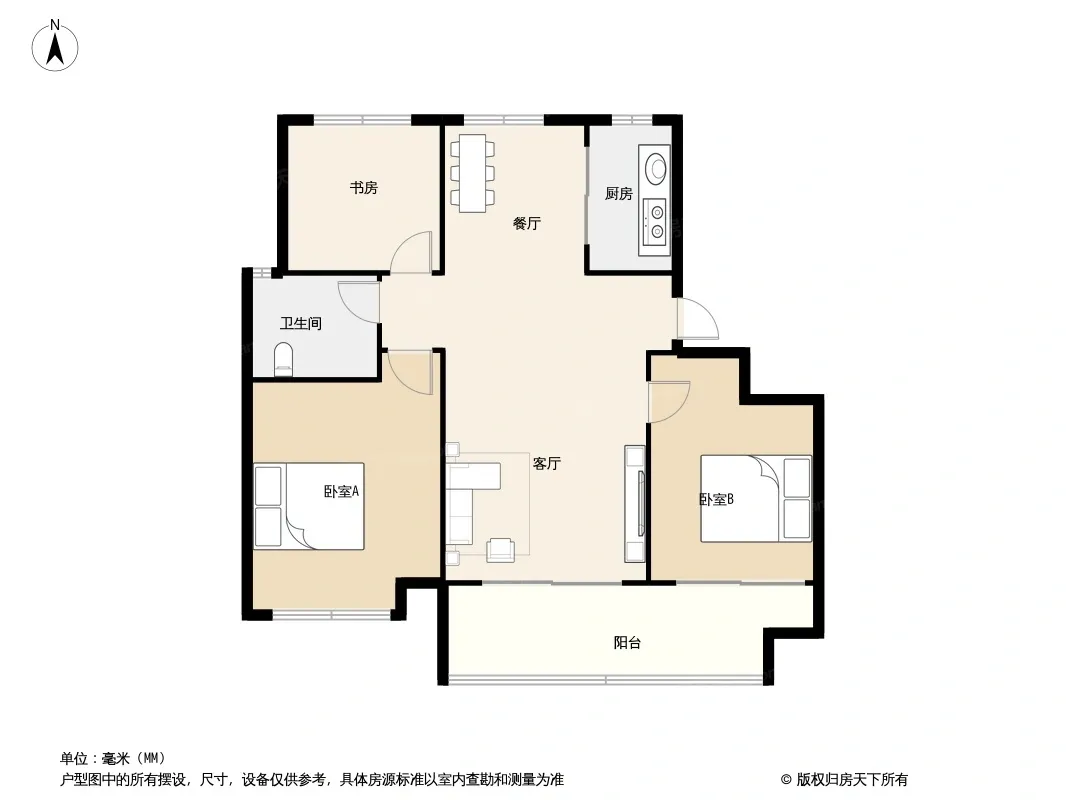 户型齐全,主打南北通透,客厅朝南三居