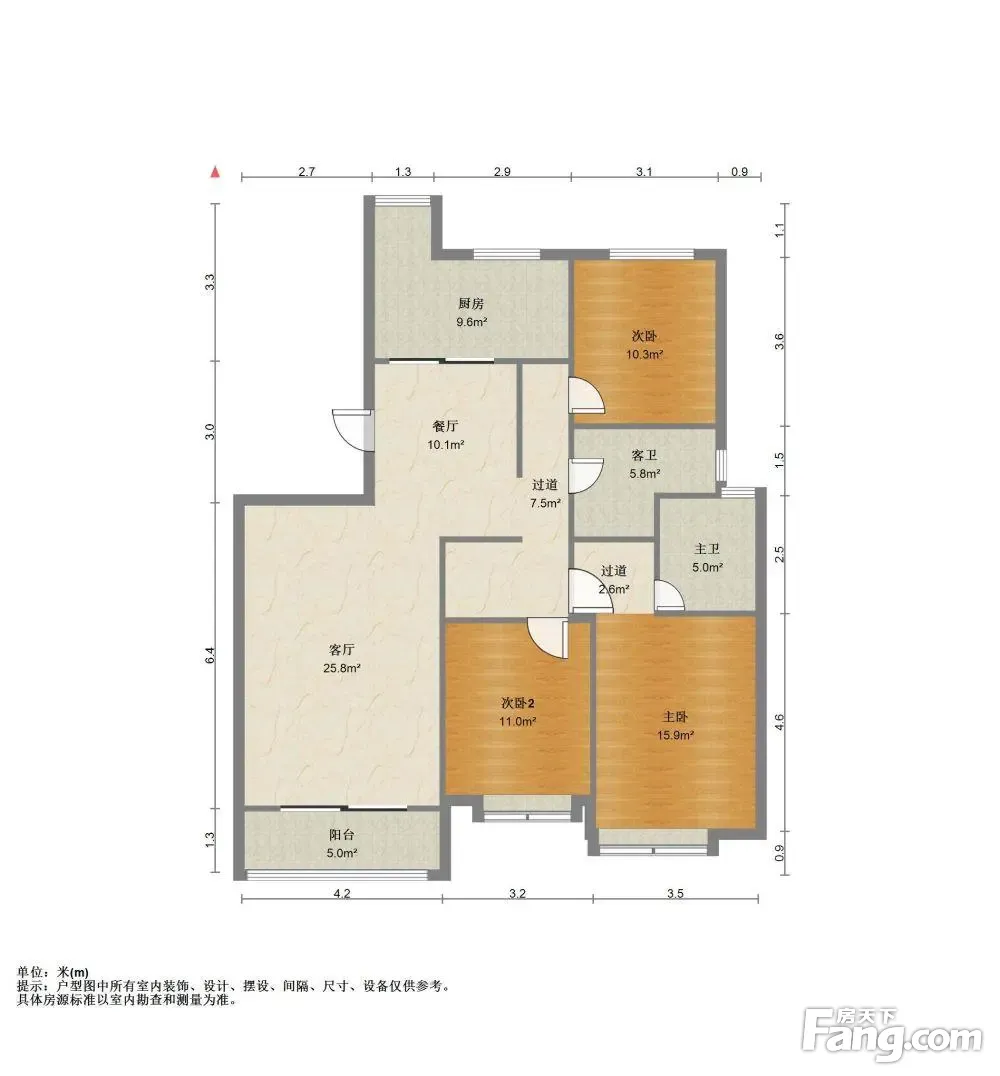 ①格局:3室2厅2卫,南北朝向,我亲自看的房子,图片也是现场拍的图片。 ②户型方正,分布合理,使用率高,没有浪费面积。 ③通透性强,明厨明卫,装修很温馨。 ④中间楼层,观景采光都特别棒。