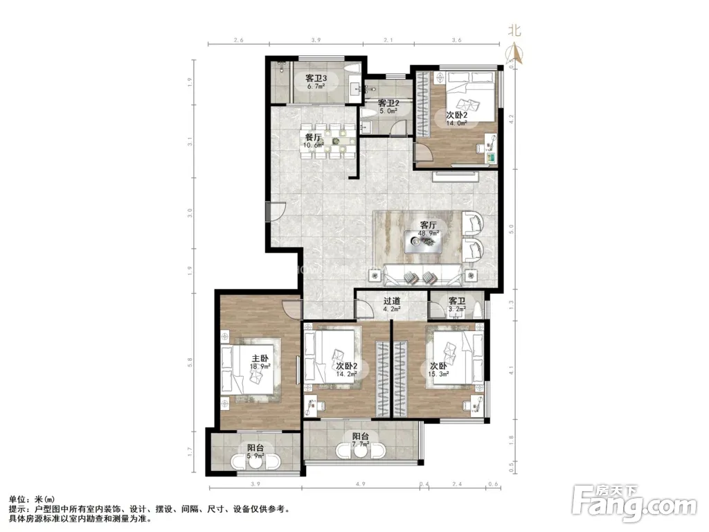 户型方正合理,南北通透,四室户型,居住更舒适