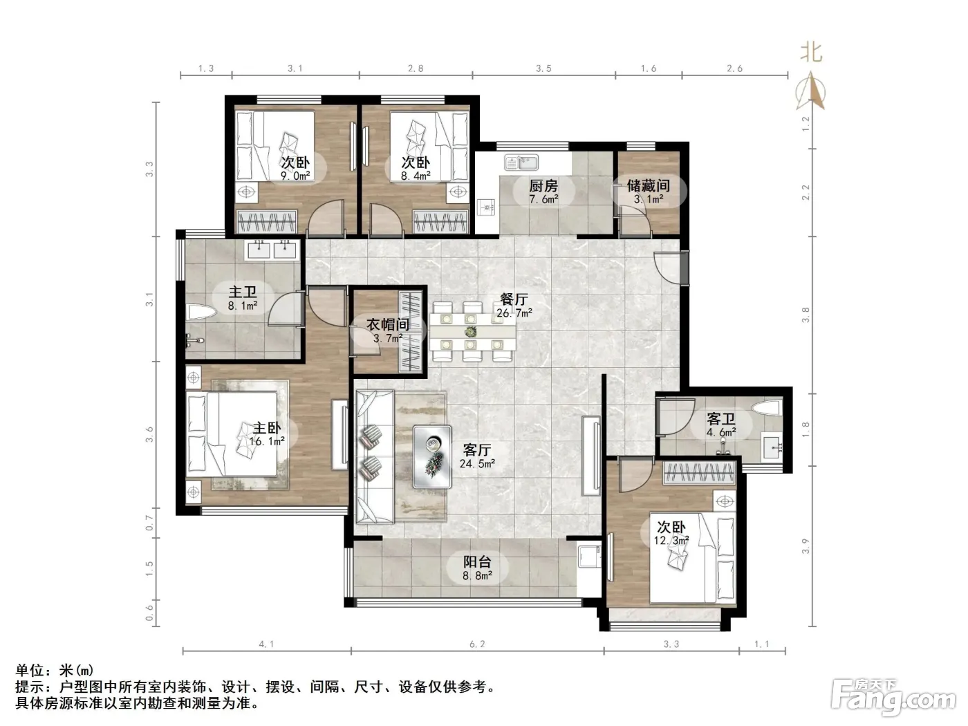 户型齐全,主打全明格局,动静分离四居