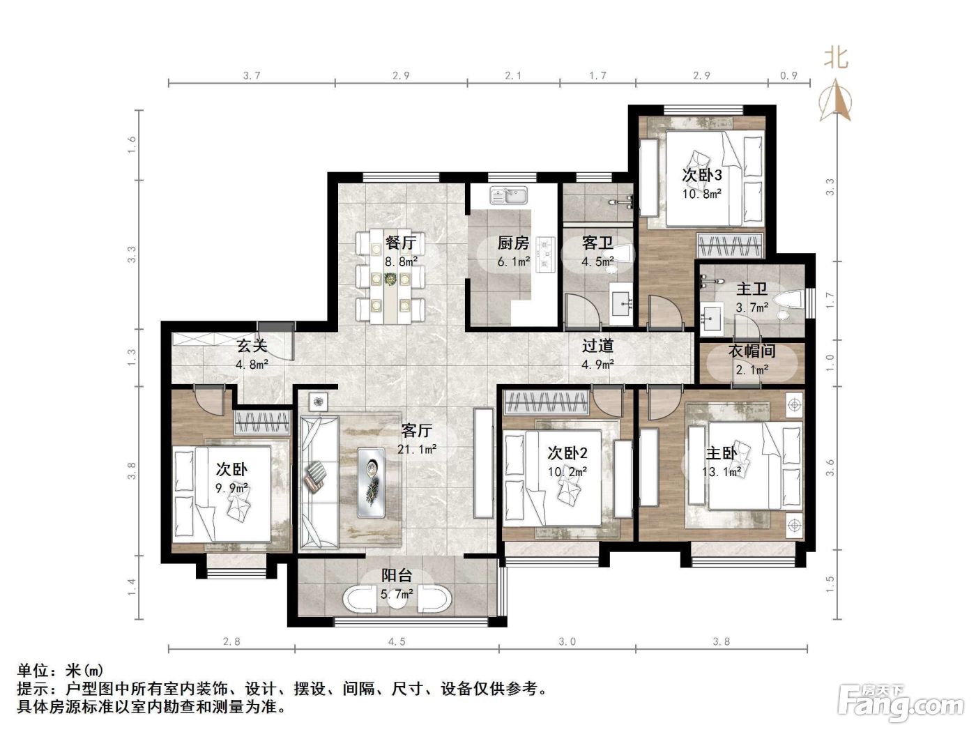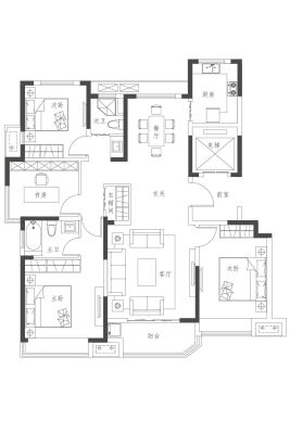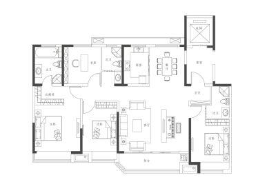 户型齐全,主打南北通透,户型方正,客厅朝南,主卧朝南,独立玄关,U型厨房,厨卫不对门四居