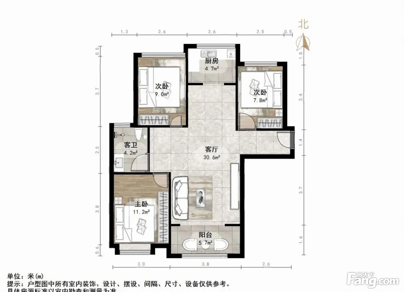 户型齐全,主打主卧朝南,干湿分离三居