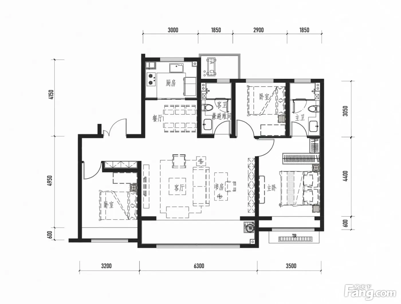 户型齐全,主打南北通透,全明格局,户型方正三居