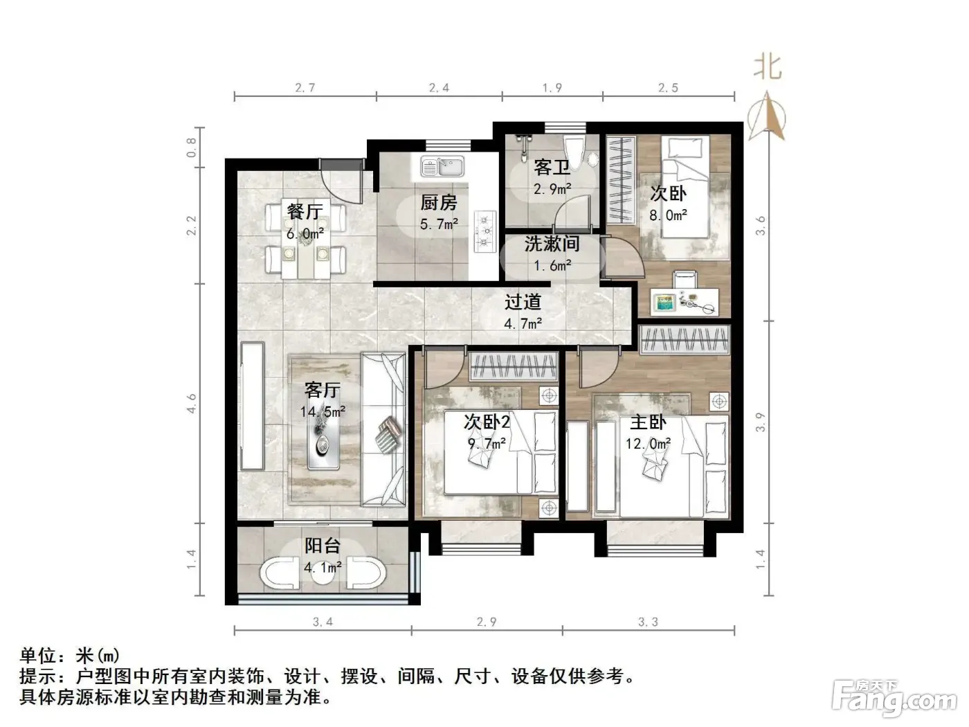 户型齐全,主打南北通透,全明格局,户型方正三居