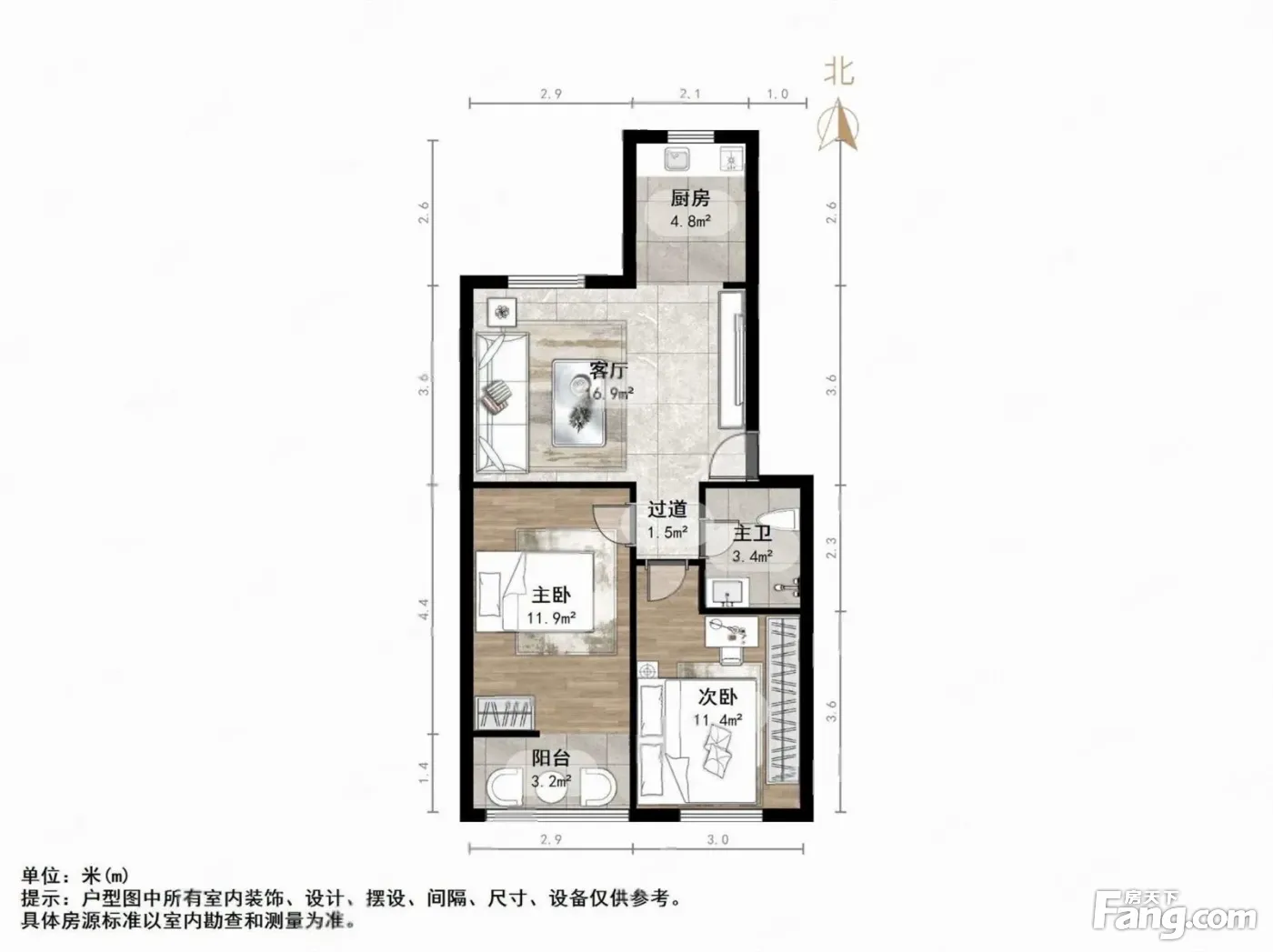 户型齐全,主打户型方正,明厨,客厅朝南,主卧朝南二居