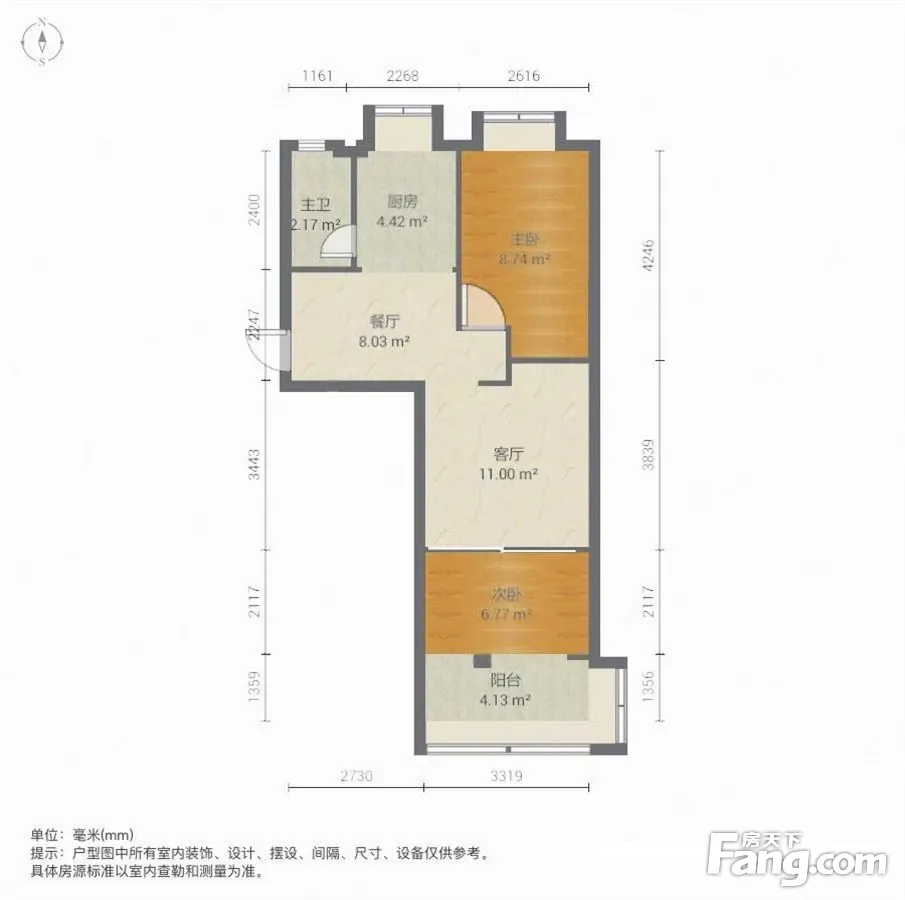 户型齐全,主打户型方正,明厨,主卧朝南二居