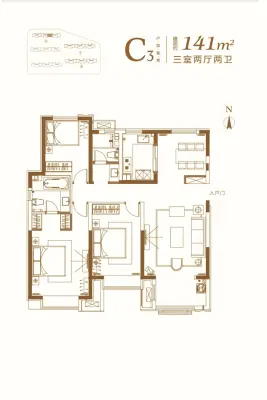 户型齐全,主打户型方正,明厨,明卫三居