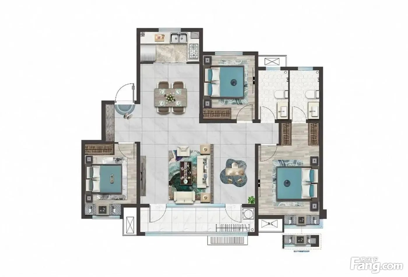 户型齐全,主打南北通透,全明格局,户型方正三居