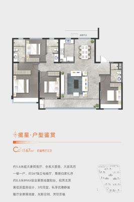 中建·星光城市户型主要有142平-265平的南北通透,全明格局,户型方正,采光充足的四居 、113平-130平的南北通透,全明格局,户型方正,采光充足的三居 。