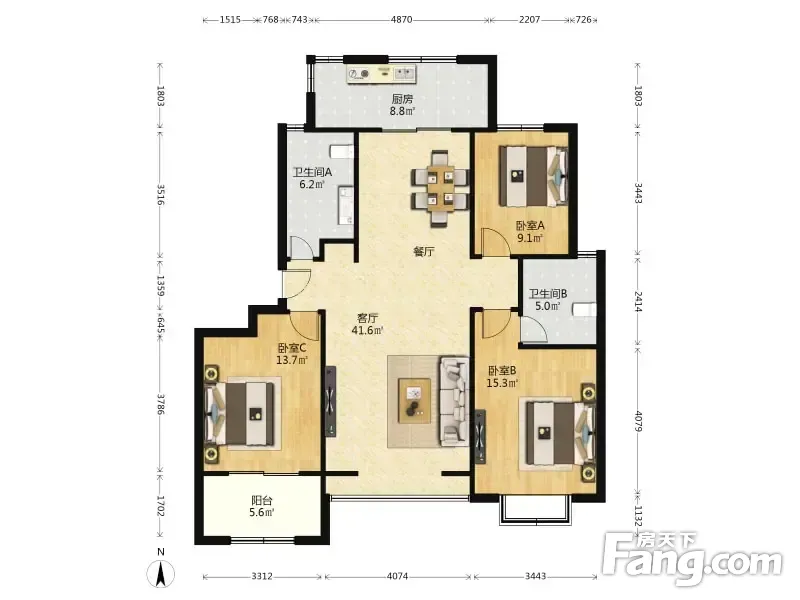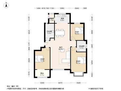 户型齐全,主打户型方正,明卫,明厨,客厅朝南,主卧朝南三居