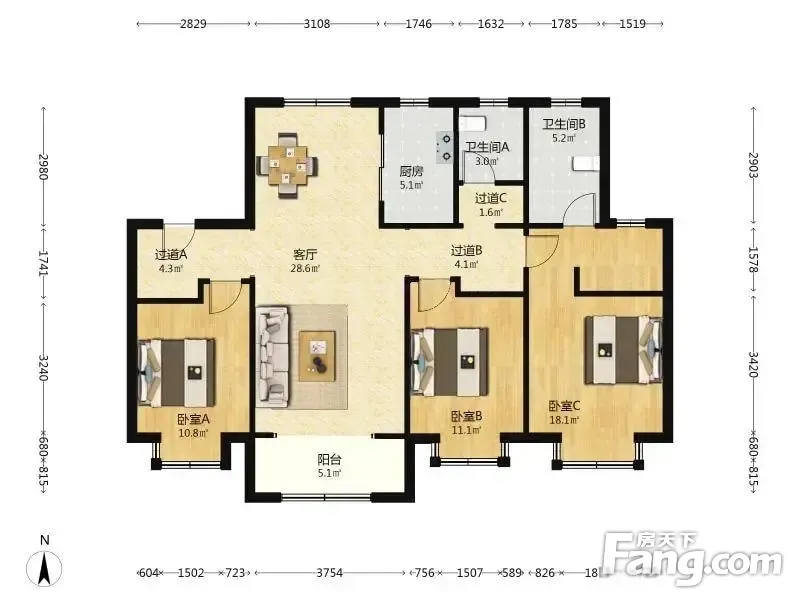 户型齐全,主打南北通透,全明格局三居