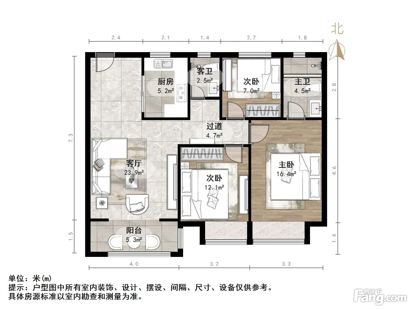 户型齐全,主打南北通透,全明格局三居