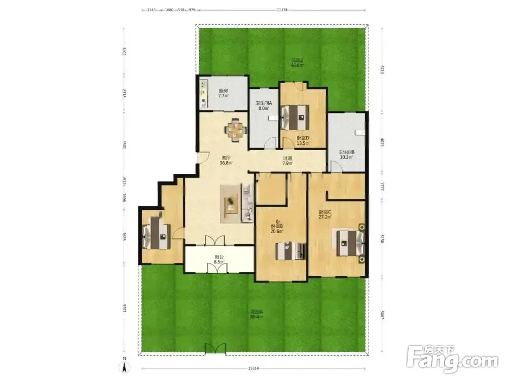 *获取完整户型报告,同时会有免费语音讲解服务