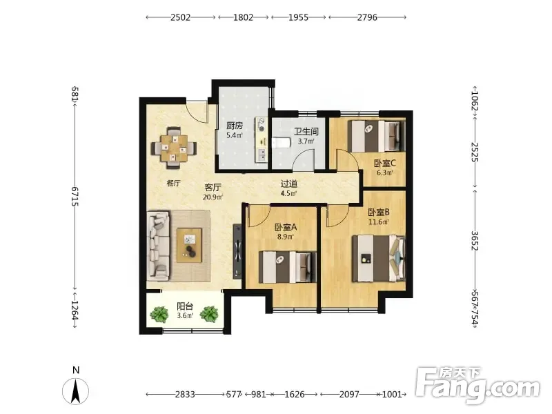 3室2厅1卫