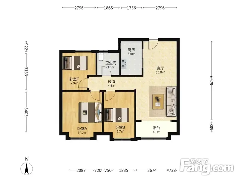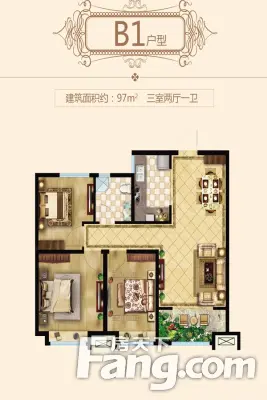 大尧风华盛景 3室2厅 97.07平