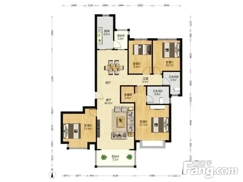 户型齐全,主打户型方正,明厨,明卫,独立衣帽间,双阳台四居