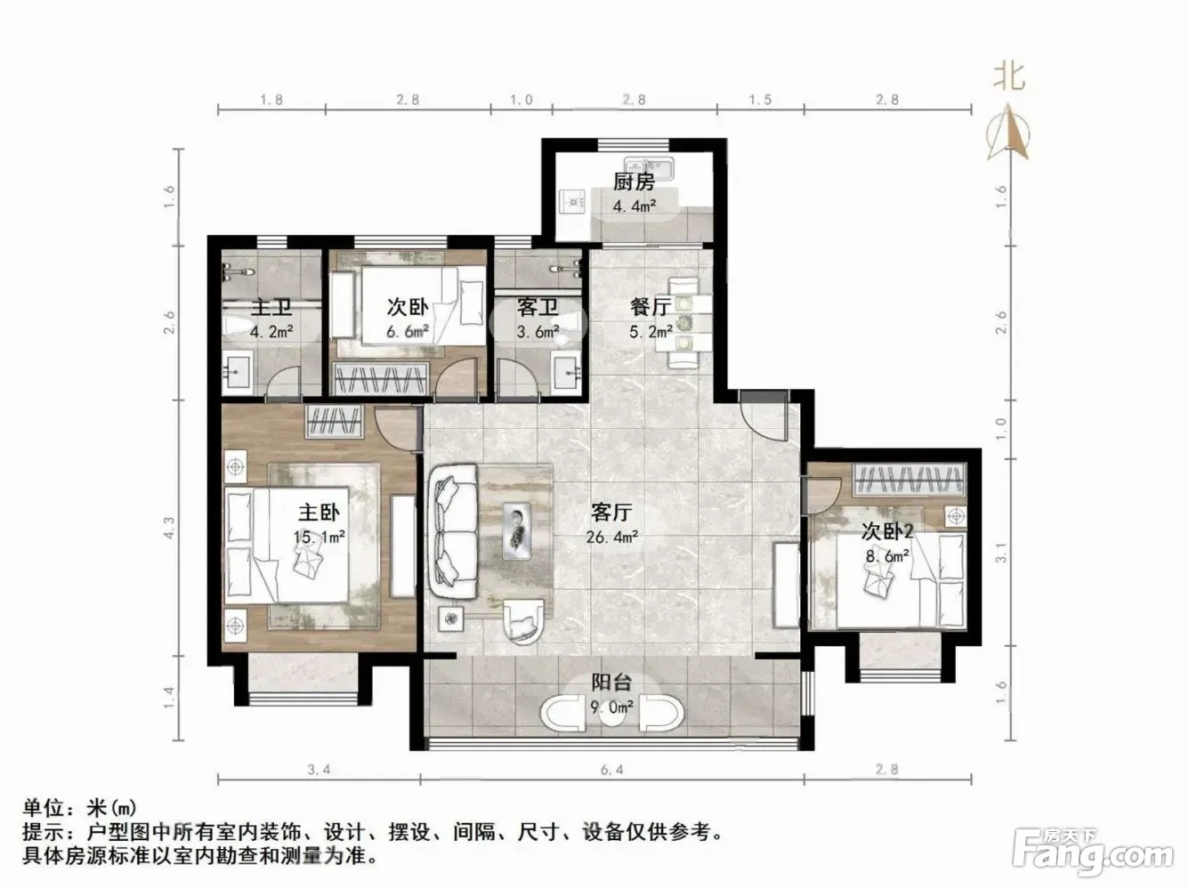 户型齐全,主打南北通透,全明格局三居