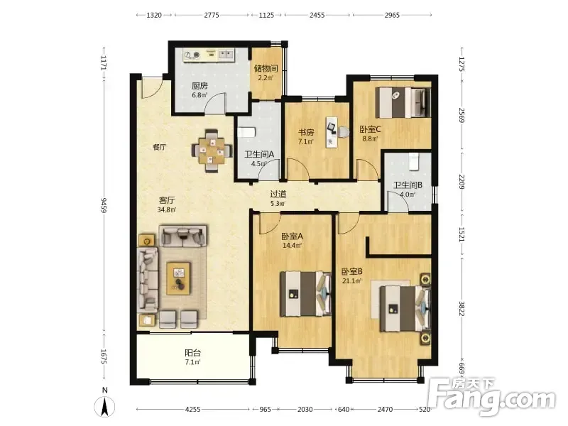 恒大龙奥御苑 4室2厅 157.17平