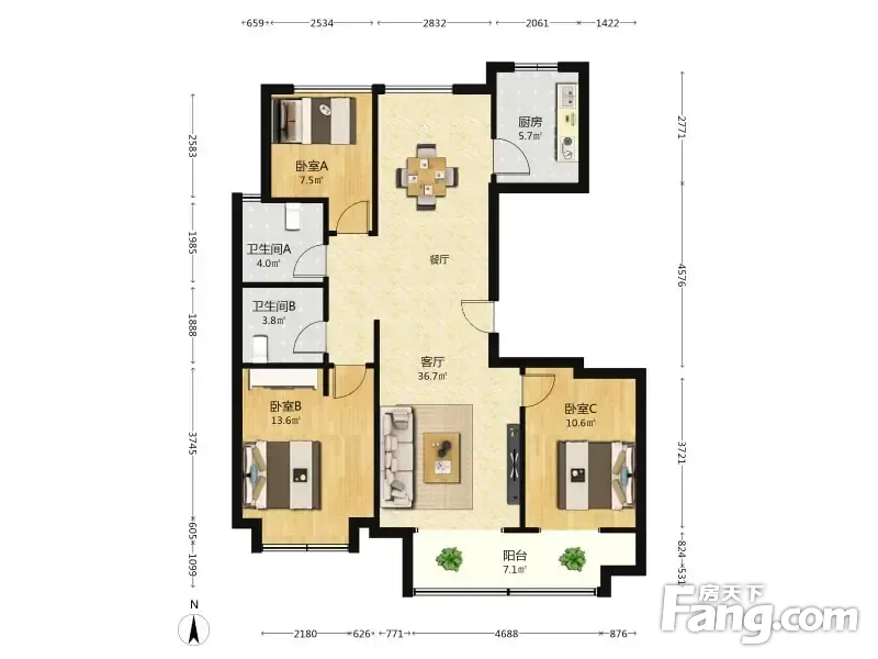 杨柳郡 3室1厅 122.91平