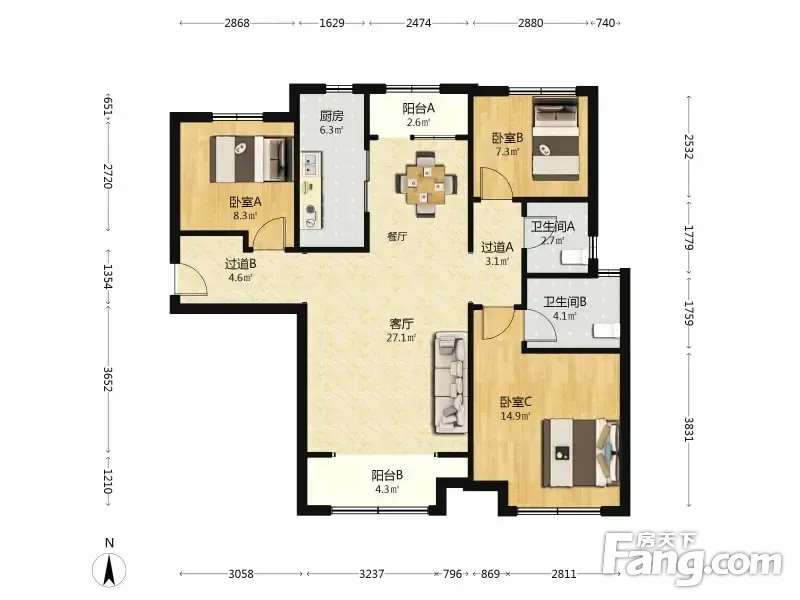 剑桥府邸 3室2厅 122.88平