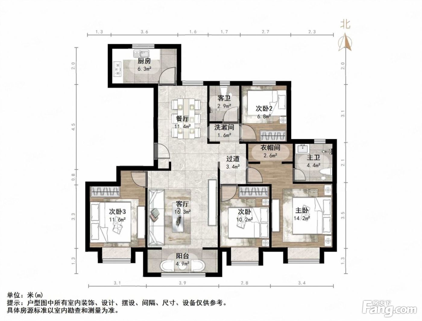户型齐全,主打南北通透,全明格局四居
