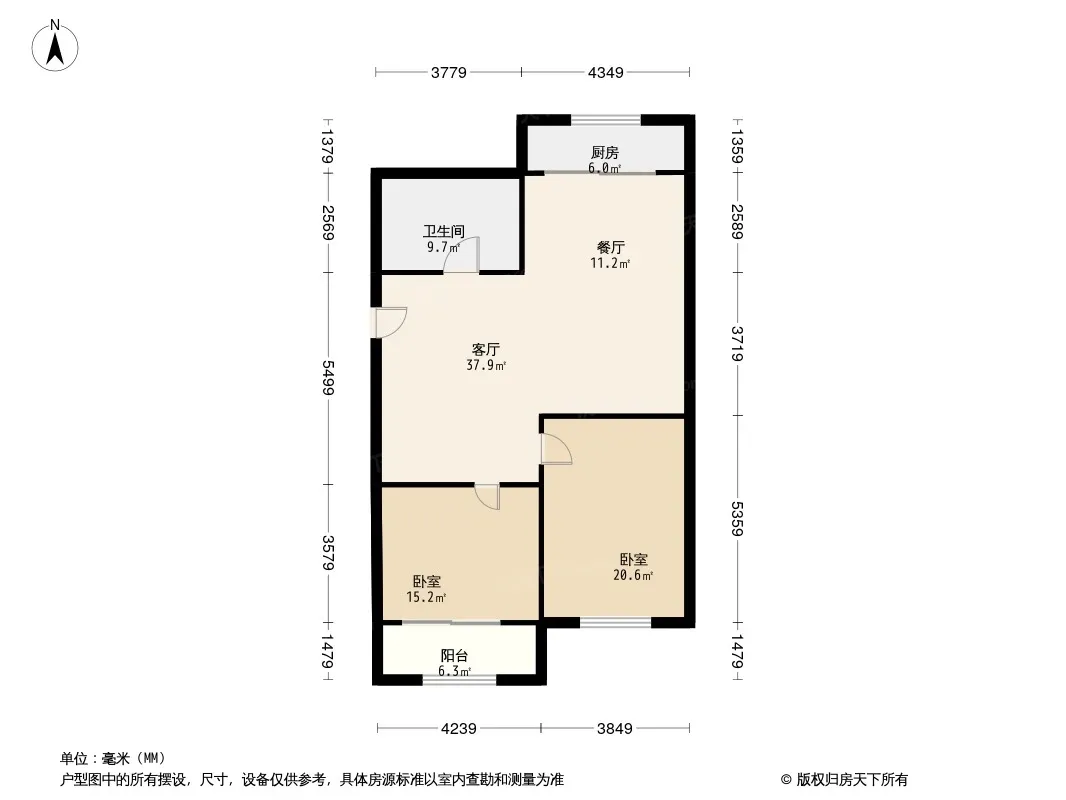 户型齐全,主打户型方正,明厨,明卫,客厅朝南二居