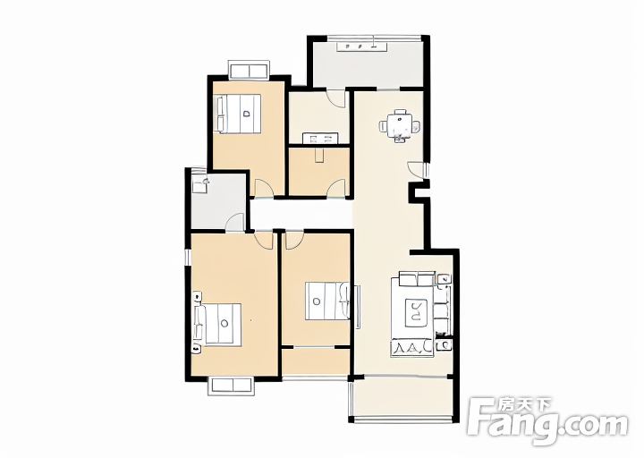 户型齐全,主打明厨,明卫,客厅朝南,全明格局三居