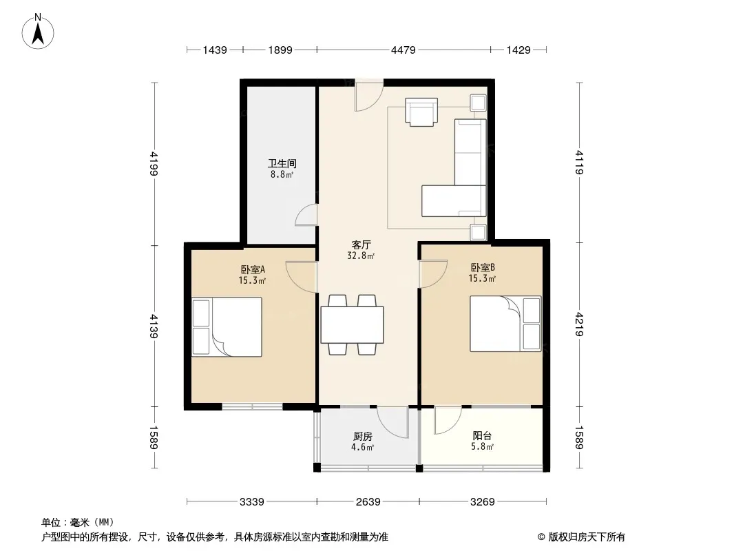 户型齐全,主打户型方正,明厨,主卧朝南二居