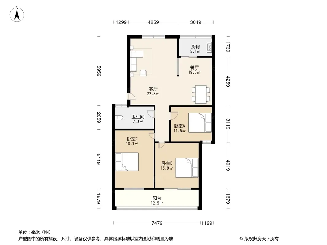 天舒居 3室2厅 南 北