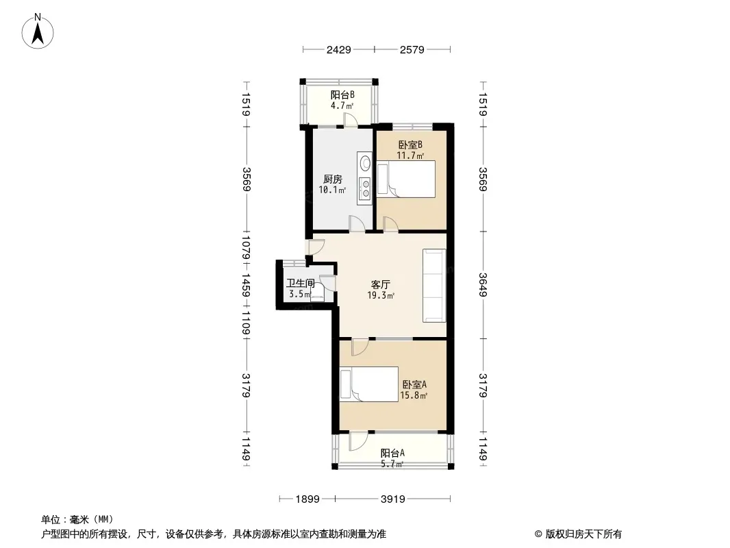 户型齐全,主打户型方正,客厅朝南,双阳台,主卧朝南二居