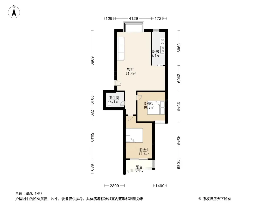 户型齐全,主打明厨,客厅朝南,主卧朝南二居