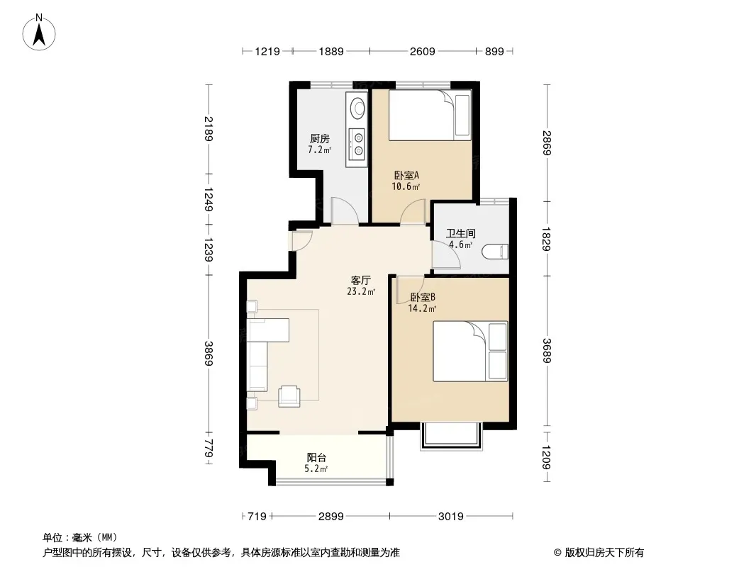 户型齐全,主打户型方正,明厨,明卫,客厅朝南,主卧朝南二居