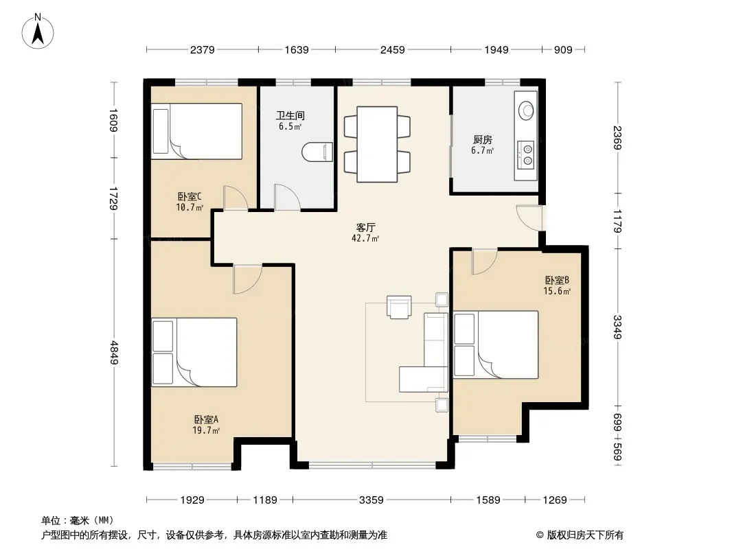 户型齐全,主打明厨,明卫,客厅朝南,全明格局,双卧朝南三居