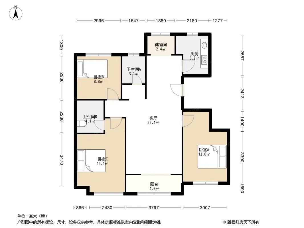 联合云东府 3室2厅 南 北
