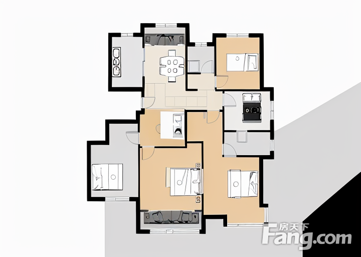 户型齐全,主打户型方正,明厨,明卫,客厅朝南三居