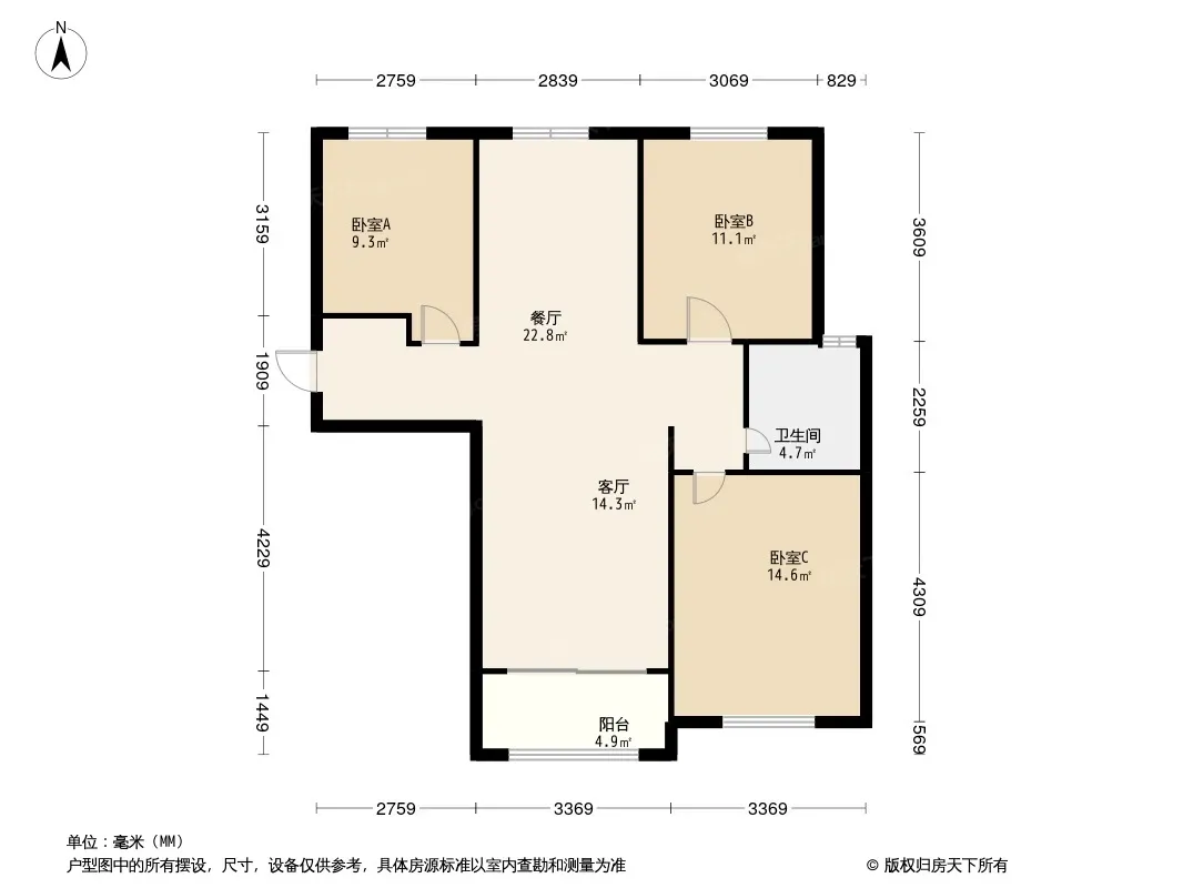 户型齐全,主打南北通透,全明格局,主卧朝南三居