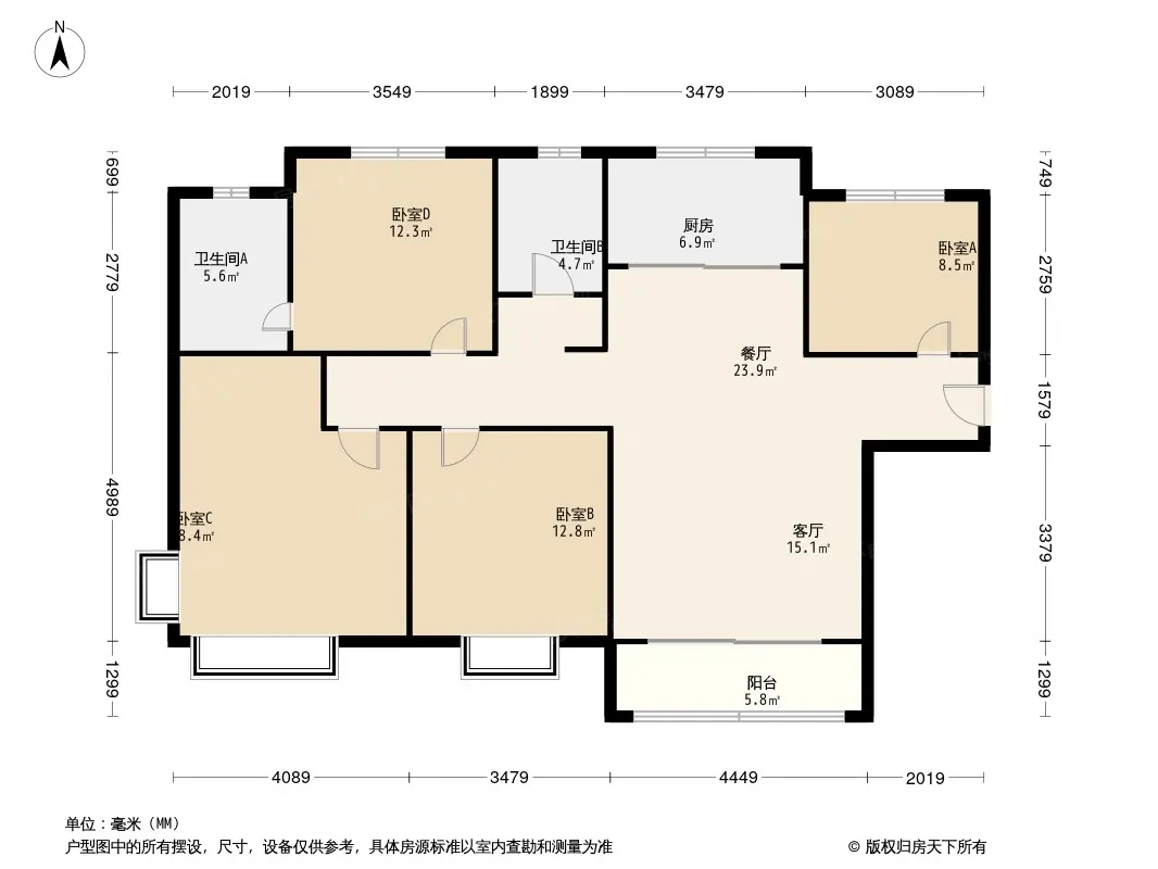 四室好房 户型方正 双气 采光充足