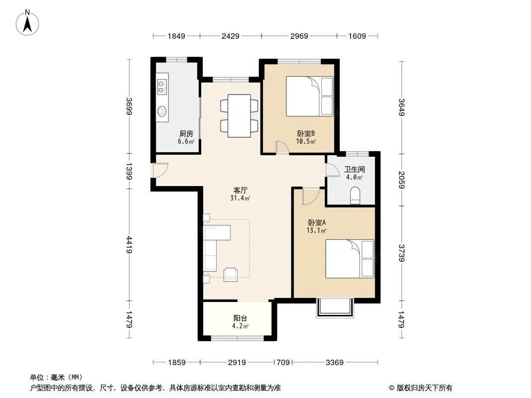 户型齐全,主打户型方正,明卫,明厨,主卧朝南二居