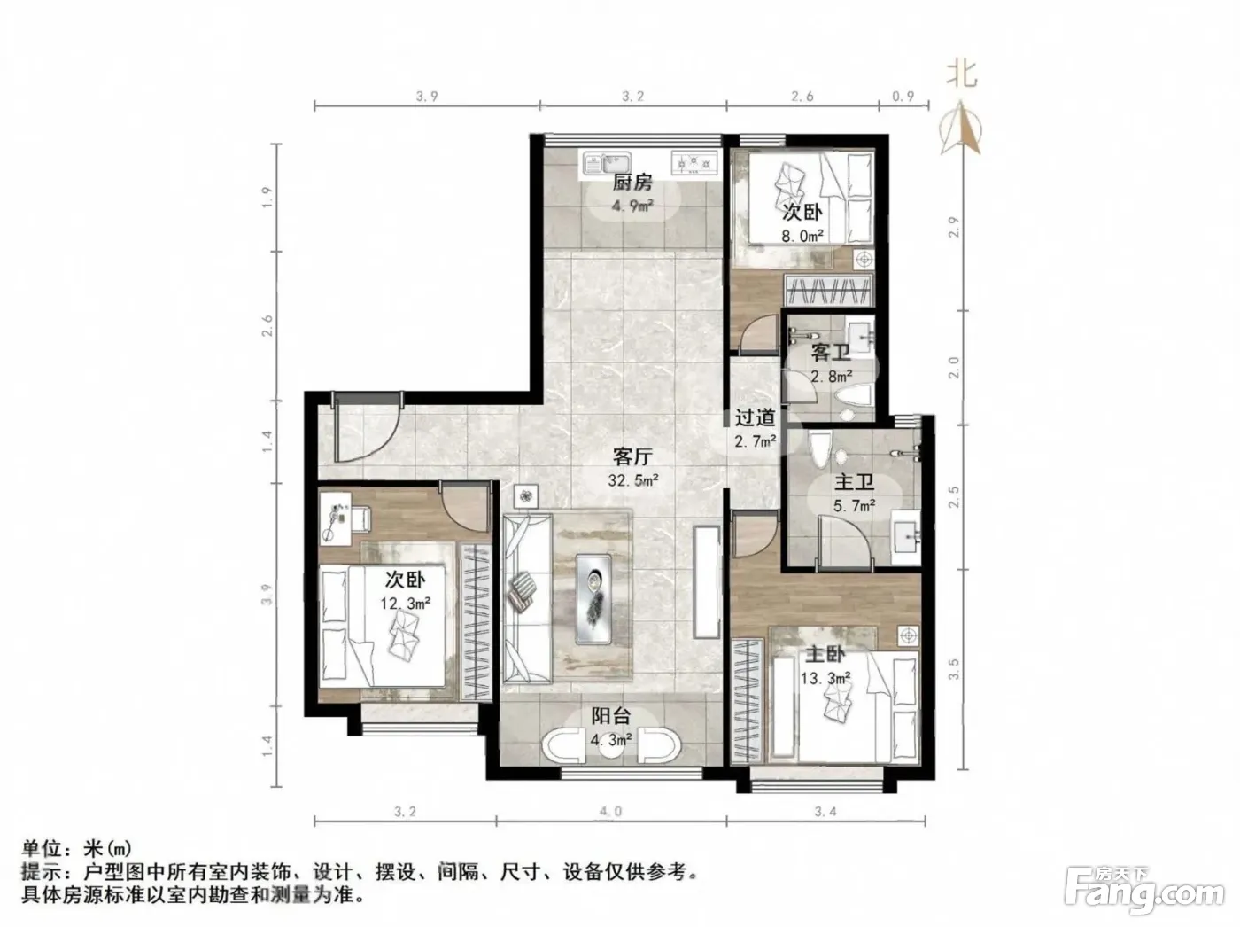 户型齐全,主打南北通透,全明格局三居