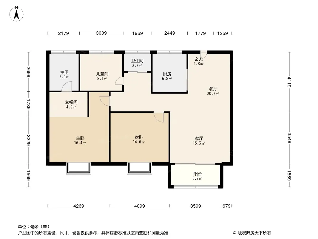 户型齐全,主打南北通透,户型方正,客厅朝南,主卧朝南,独立玄关,U型厨房,厨卫不对门四居