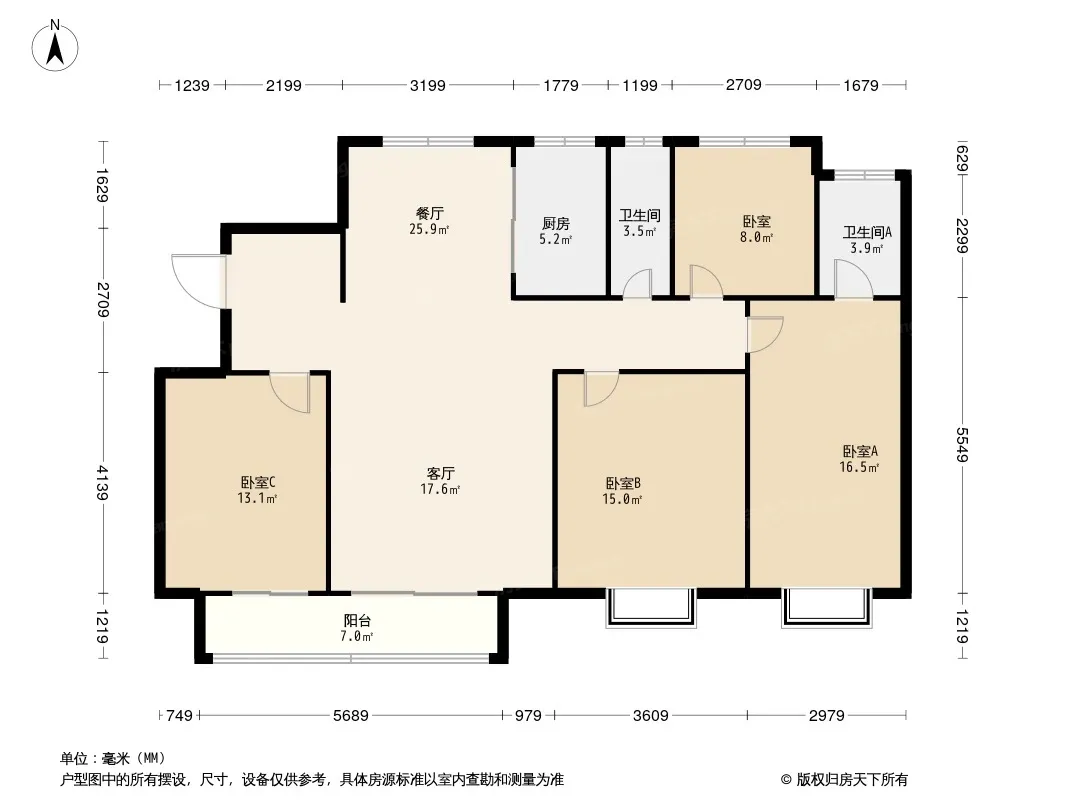 户型齐全,主打南北通透,全明格局三居